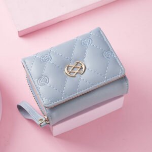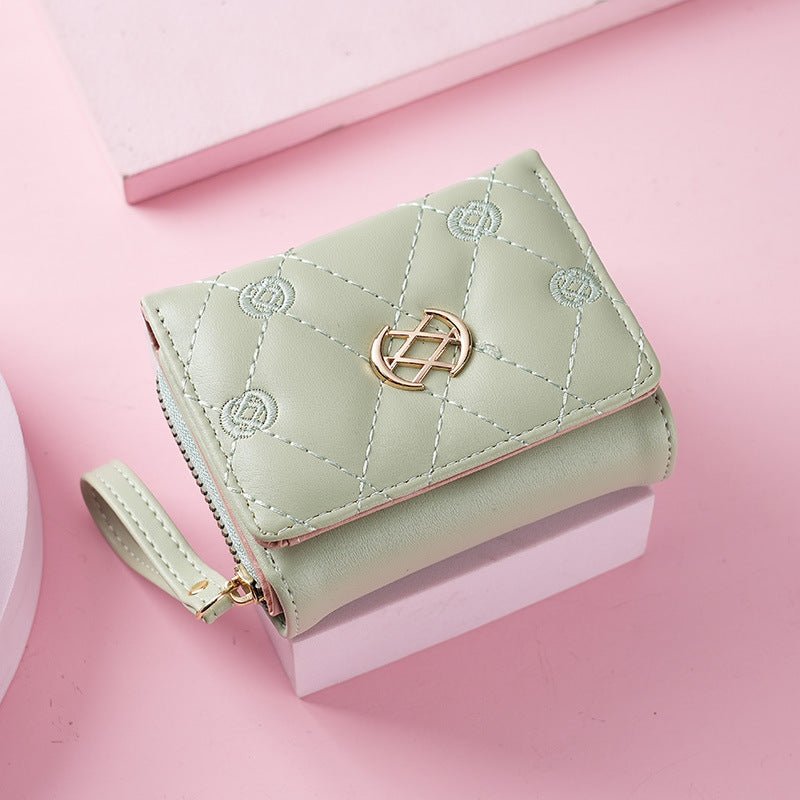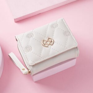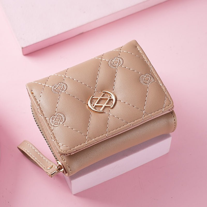 Women’s Short Zipper Three-fold Embroidered Fashion Clutch Purses